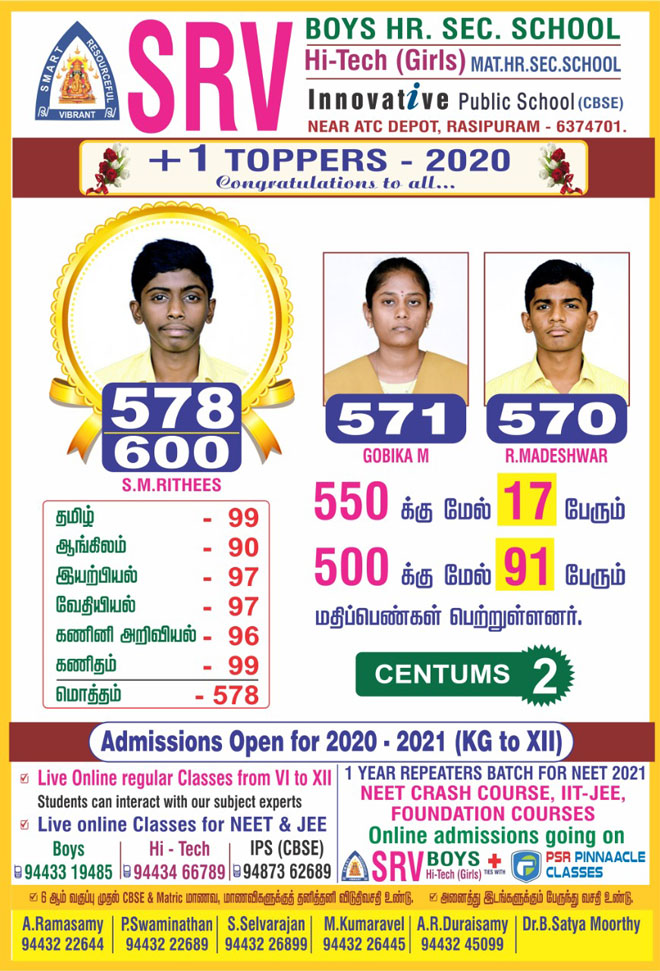 SRV Boys: NEET Achievements 2020